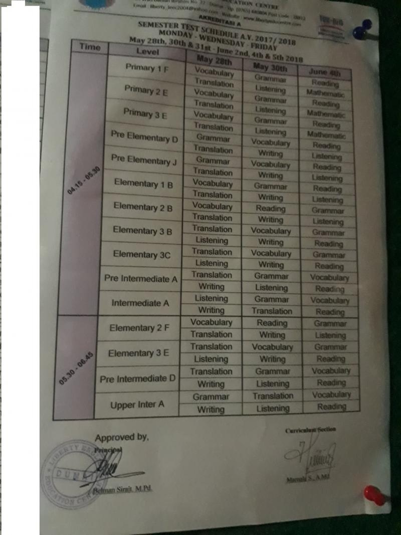 Schedule Test Term II (Liberty Merdeka Lama) Tuesday-Thursday-Saturday