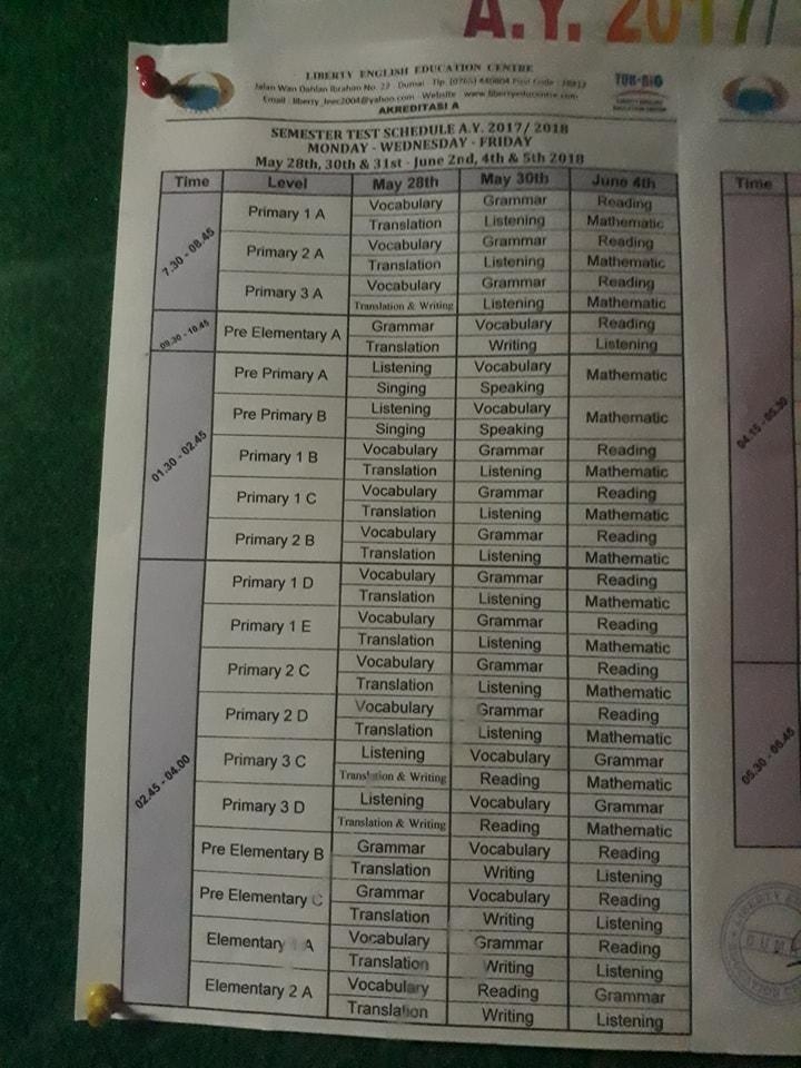 Schedule Test Term II (Liberty Merdeka Lama) Monday-Wednesday-Friday